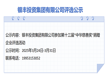銀豐集團(tuán)第十三屆“中華慈善獎(jiǎng)”慈善項(xiàng)目申報(bào)公示