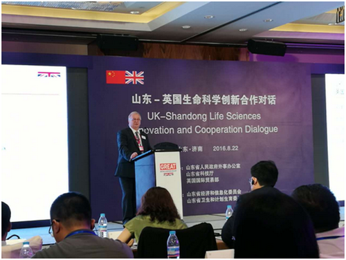 為促進(jìn)山東省與英國(guó)在生命科學(xué)領(lǐng)域的創(chuàng)新合作,由山東省外事辦公室、山東省科技廳、英國(guó)駐華大使館、英國(guó)貿(mào)易投資總署共同主辦,山東省經(jīng)信委、山東省衛(wèi)計(jì)委協(xié)辦的“山東•英國(guó)生命科學(xué)創(chuàng)新