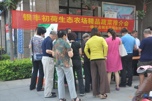 為答謝新老業(yè)主,2014年6月5日晚6時,銀豐山莊、銀豐花園物業(yè)服務中心舉辦了一場“銀豐初荷生態(tài)農場精品蔬菜推介會”--有機甘藍菜特賣活動(銀豐初荷生態(tài)農場為此次活動提供有機甘藍菜約800棵)。