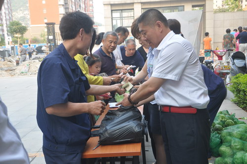 銀豐山莊和銀豐花園物業(yè)服務中心提前利用短信、宣傳欄、橫幅等形式通知業(yè)主特賣活動時間及地點。業(yè)主們積極踴躍參與,不到一小時甘藍菜就被業(yè)主一搶而空。