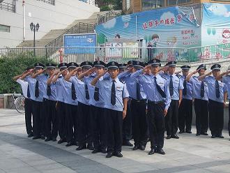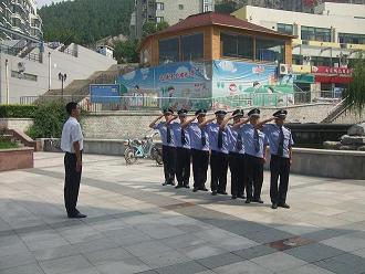 2010年8月27日14點(diǎn),金和物業(yè)公司為加強(qiáng)安保安員的工作能力,提高安保安員的整體素質(zhì),在銀豐山莊會所廣場組織了一次保安隊(duì)列訓(xùn)練以及理論比賽。