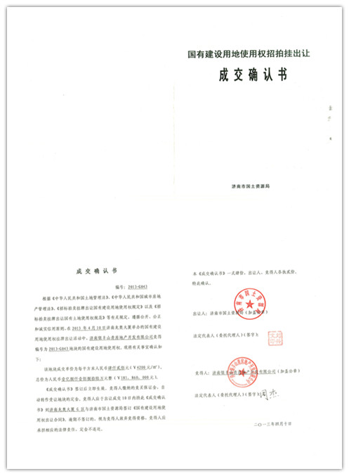 濟(jì)南銀豐山青房地產(chǎn)開發(fā)有限公司成功摘得土地并簽訂《成交確認(rèn)書》