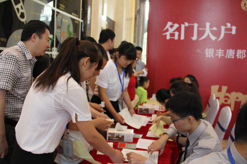 現(xiàn)場客戶多為中年人,而一些是原本居住過銀豐花園、銀豐山莊等銀豐地產的老業(yè)主們,趁此新組團推出之際,挑選個大戶型,改善住房環(huán)境?,F(xiàn)場還有交三萬抵四萬,贈三年物業(yè)費的特別優(yōu)惠。另外,還給予開盤當日選房的客戶送出精美的父親節(jié)禮品茶具一套。