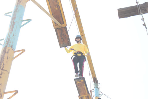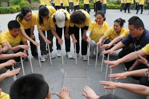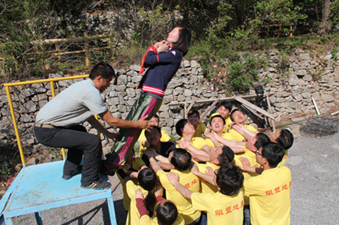 拓展訓(xùn)練期間,各隊分別進行了“空中單杠”、“天梯”、“斷橋”、“高空相依” “盲人方陣”、“團隊?wèi)?zhàn)鼓”、“圣塔”、“背摔”“蛟龍出海”等拓展項目。各隊成員充分發(fā)揮自己最大的潛能,尤其在高空類項目中敢于挑戰(zhàn)自我、超越自我,配合團隊共同完成了任務(wù)。在團體比賽中,“團隊?wèi)?zhàn)鼓”的成績打破了拓展訓(xùn)練營內(nèi)保持五年的記錄,顛球數(shù)目高達1211個。