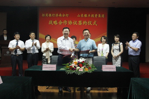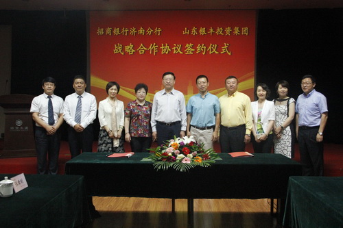 2015年9月22日,招商銀行股份有限公司濟南分行與山東銀豐投資集團有限公司在銀豐大廈順利簽署《戰(zhàn)略合作協(xié)議》。招商銀行濟南分行行長周偉林、副行長孟麗等一行五人以及山東銀豐集團董事長王偉、副總裁趙曉陽等領導出席了本次簽約儀式。周行長與王董事長分別發(fā)表重要講話。