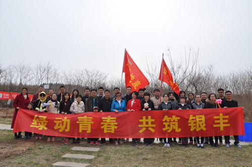 2016年3月12日,銀豐集團工會、銀豐集團團委、銀豐地產(chǎn)集團團總支聯(lián)合主辦的“綠動青春、共筑銀豐”義務植樹活動在銀豐唐郡圍子山舉行。銀豐集團副總裁彭秀玲、青年員工等60余人參加?;顒痈吮姸嚆y豐地產(chǎn)新老業(yè)主前來參加。