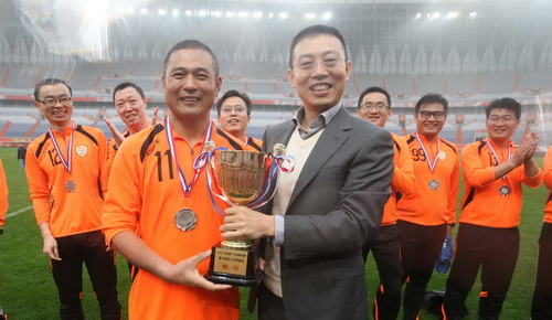 “春雨貴如油”,對于已經(jīng)五六十天沒有降雨的濟(jì)南來說,4月16日的這場雨更是彌足珍貴。銀豐集團(tuán)和齊魯晚報足球隊(duì)的隊(duì)員們,用實(shí)際行動迎接這場喜雨的到來——16日早上,“友誼杯”銀豐集團(tuán)、齊魯晚報2016足球聯(lián)誼賽在濟(jì)南奧體中心“西柳”足球場進(jìn)行,山東銀豐投資集團(tuán)有限公司董事長王偉、大眾報業(yè)集團(tuán)黨委常委、副總編輯楊曉洲等領(lǐng)導(dǎo)親臨現(xiàn)場觀戰(zhàn),并在賽后為比賽雙方頒發(fā)了獎杯及獎牌。