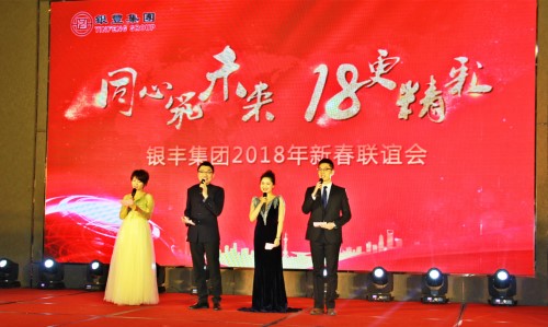 金雞辭舊歲,瑞狗迎新年。2018年2月6日,銀豐集團(tuán)2018年年會在濟(jì)南銀豐華美達(dá)酒店舉行。銀豐集團(tuán)年度優(yōu)秀員工、各事業(yè)部中層以上領(lǐng)導(dǎo),以及控股集團(tuán)全體員工共計(jì)180余人齊聚一堂,共度聯(lián)歡。