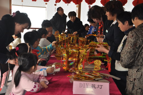 銀豐山莊的活動(dòng)不僅有猜燈謎、DIY花燈,還現(xiàn)場(chǎng)煮元宵讓業(yè)主品嘗,還不到活動(dòng)開始時(shí)間,業(yè)主都已經(jīng)熱情高漲的等在休息區(qū)了。下午2點(diǎn)半左右,活動(dòng)在歡快的《賀新年》樂曲中拉開序幕,猜中謎語的業(yè)主迫不及待摘下來去領(lǐng)獎(jiǎng);最高興的就屬小朋友業(yè)主了,在工作人員的安排下,排隊(duì)領(lǐng)湯圓吃;花燈區(qū)以家庭為單位認(rèn)真制作花燈,整個(gè)活動(dòng)現(xiàn)場(chǎng)熱鬧非凡。