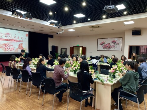早春三月帶來了溫暖的陽光,在這個(gè)楊柳依依,桃花灼灼的季節(jié)里,我們迎來了第109個(gè)國際勞動(dòng)?jì)D女節(jié)。2019年3月8日,銀豐集團(tuán)舉辦了一場“遇見花開 綻放美好”鮮花花藝沙龍活動(dòng)。在本部辦公的三十多位“女神”齊聚銀豐大廈多功能廳,與綻放的鮮花來一場美麗的約會(huì)。