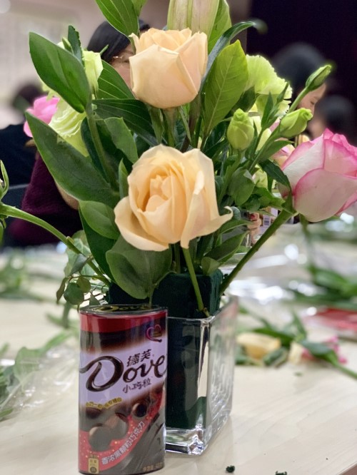 活動(dòng)現(xiàn)場花香四溢,氣氛溫馨又浪漫?;ㄋ?yán)蠋煬F(xiàn)場教授插花的基本知識,演示插花的技巧。大家邊聽邊學(xué)邊動(dòng)手,興致勃勃地創(chuàng)作起自己的插花作品來,看著眼前親手插的精美花束,所有人臉上都綻放出燦爛的笑容。大家紛紛拿出手機(jī),來張自拍,記錄下這美麗的瞬間。