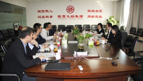 2019年3月8日,日本株式會社細(xì)胞治療技術(shù)研究所代表大久保弘一,理學(xué)博士楊慧瑜以及鄭彤彤女士到訪銀豐生物集團(tuán)參觀交流,銀豐生物集團(tuán)董事長生德偉、總裁宋現(xiàn)收給予熱情接待。