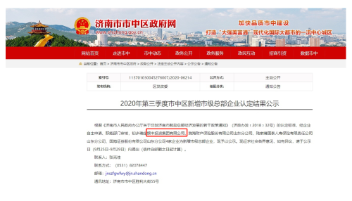近日,濟南市市中區(qū)人民政府公布了2020年第三季度市中區(qū)新增市級總部企業(yè)認定結果,市中區(qū)4家企業(yè)被認定為濟南市總部企業(yè),銀豐投資集團有限公司榜上有名。
